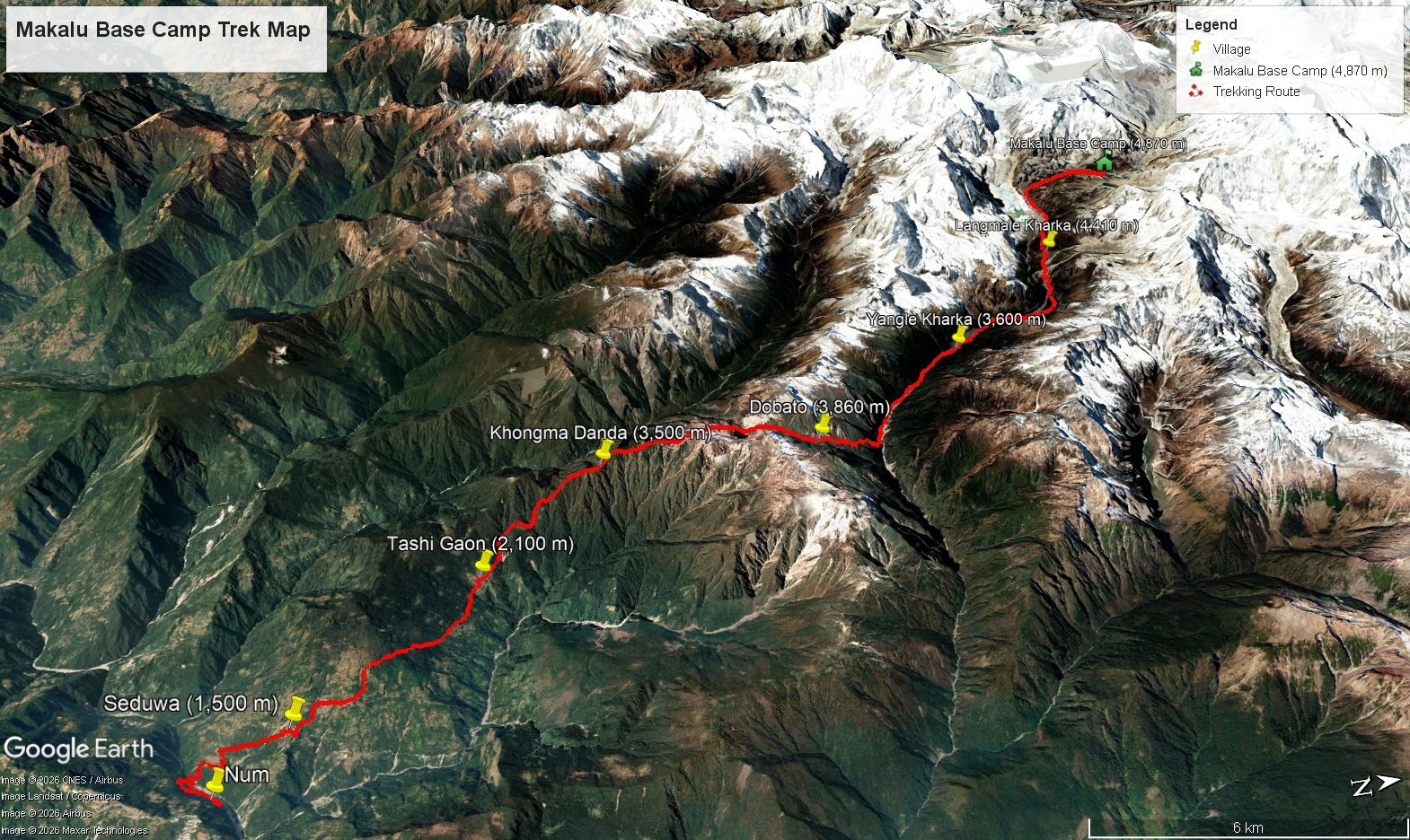 After breakfast, drive through winding mountain roads to Num, a hilltop village with dramatic valley views. From here, the trek officially begins. Descend steeply to the Arun River before climbing through terraced fields and forested trails to Seduwa, the gateway village to the Makalu region. Overnight at a teahouse.