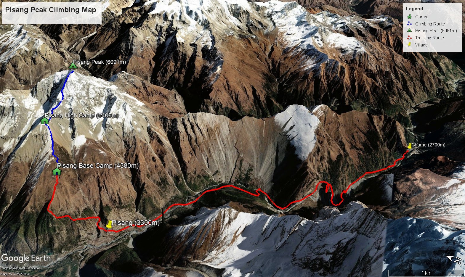 No prior climbing experience is required for Pisang Peak, which is one of the reasons it is so popular among trekkers making their first step into mountaineering. The technical demands of snow slopes, crampons, and basic ice axe use are all within reach of any fit trekker willing to follow instruction. Your climbing guide will conduct thorough training at base camp covering crampon technique, ice axe handling, and movement on fixed ropes before the summit push. Previous trekking experience above 3,500m is recommended to ensure your body responds well to altitude, but this is not a peak that requires a mountaineering background.